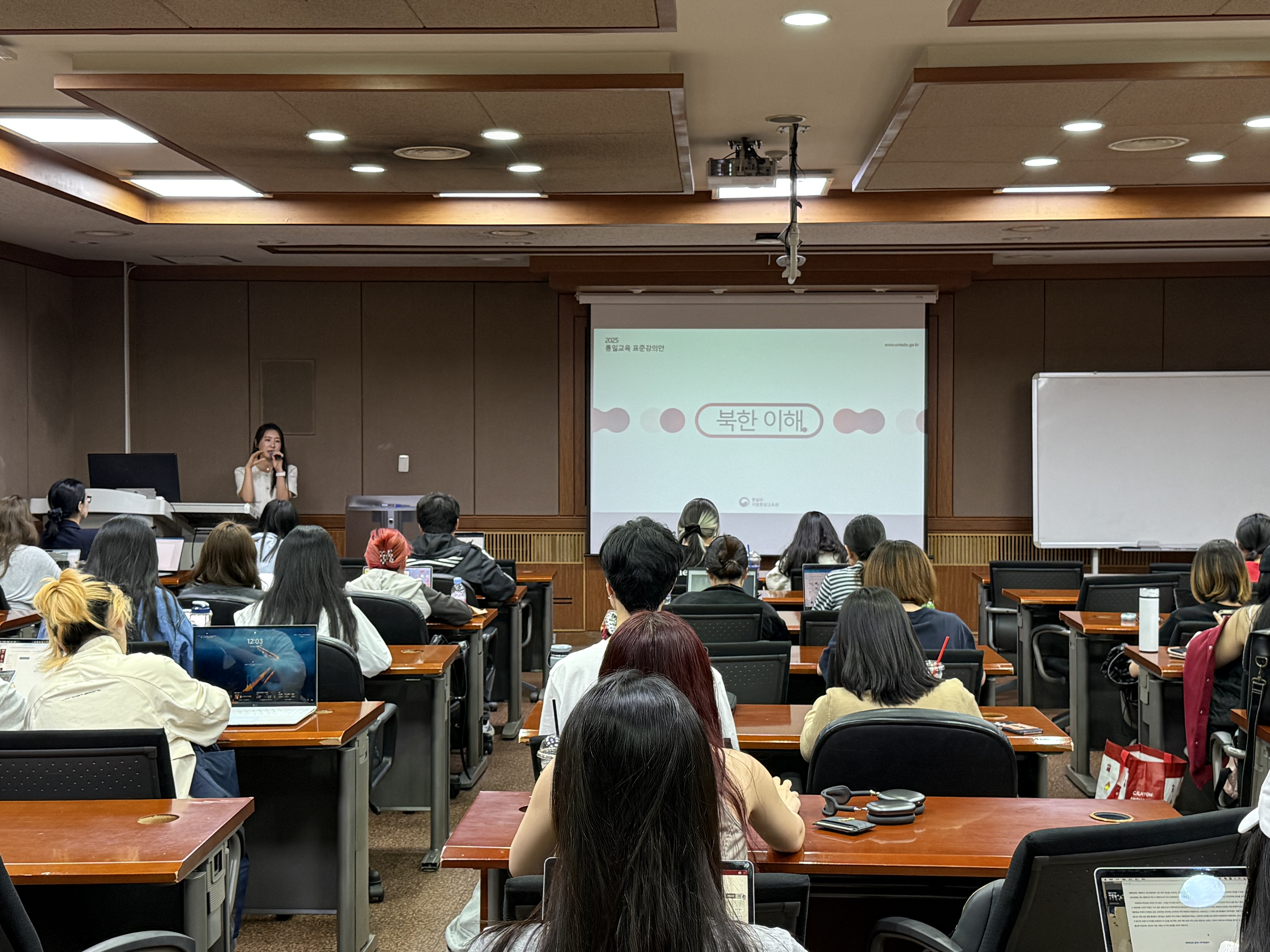 2025년 9월 22일 한국 사회의 이해 수업(교수: 송지예)에서는 탈북민이자 북한인권운동가로 활동하고 계신 채윤서 선생님의 특강이 있었습니다. 강의에서는 북한의 정치·경제 체제와 군사 정책에서부터 최근 주목받는 북한 MZ세대의 변화까지 폭넓은 주제를 다루어 주셨습니다. 특히 직접 경험한 이야기를 통해 북한 사회를 내부의 시선으로 생생하게 전달해 주셨습니다. 강의 이후 학생들의 질문이 이어지며 활발한 질의응답 시간이 진행되었습니다. |