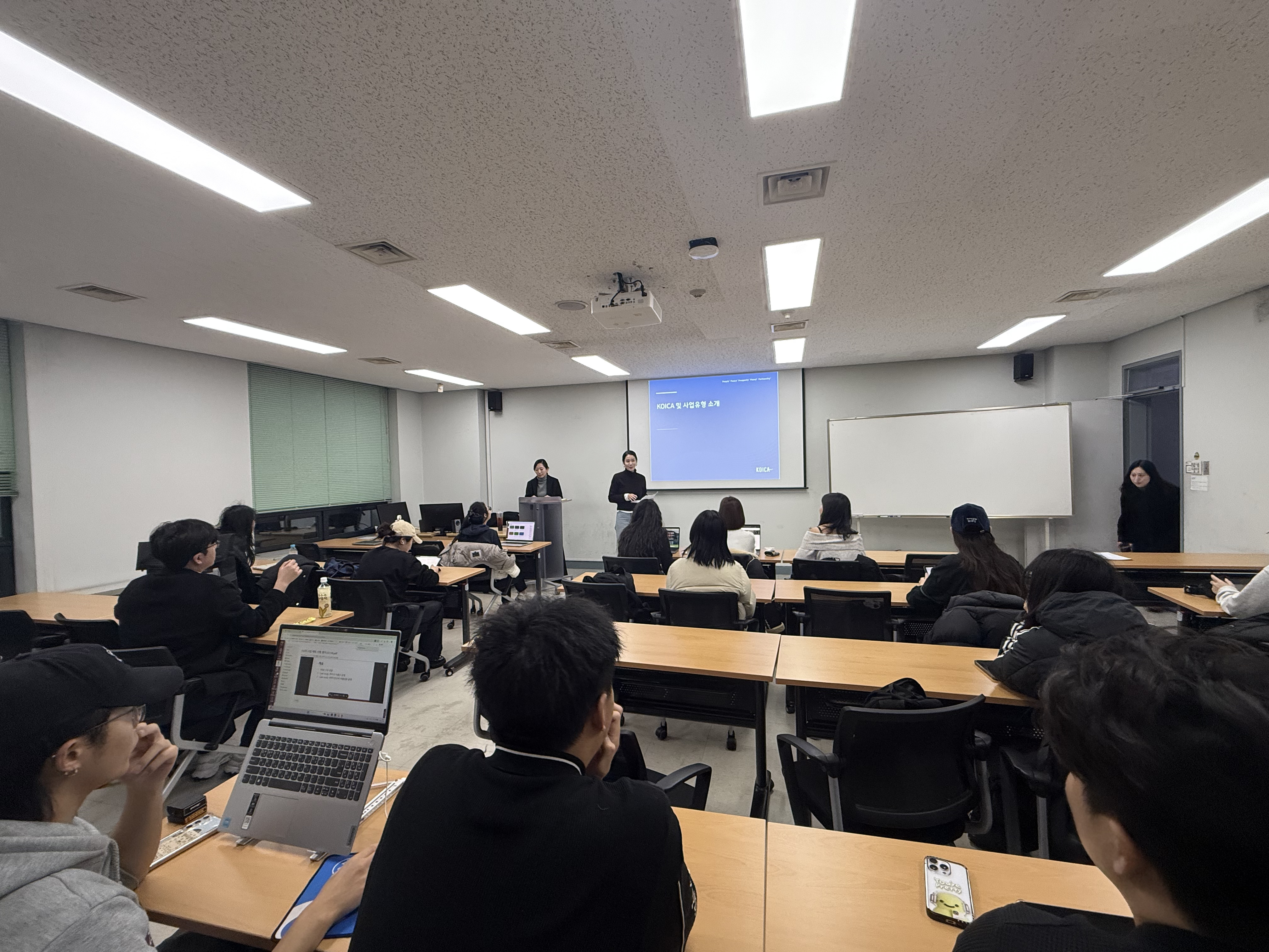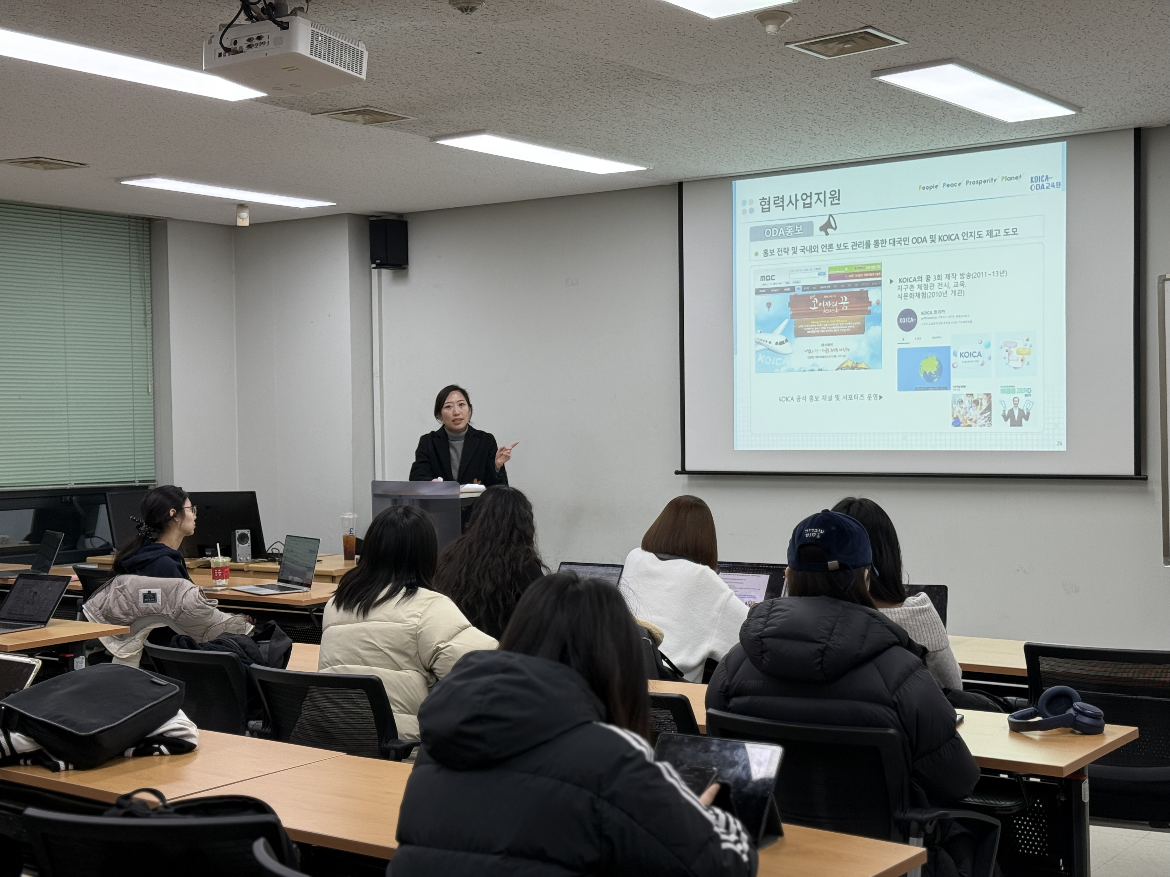 2025년 11월 19일 국제개발협력 수업 (교수: 강규원)에서는 KOICA 동반성장팀에서 근무하고 계신 성민경 과장님의 특강이 있었습니다. 강의에서는 KOICA의 역할과 기능을 비롯하여 주요 사업, ODA의 의의와 대학과의 협력 방안까지 폭넓은 주제를 다루어 주셨습니다. 강의 이후 KOICA를 비롯한 국제기구에 관심이 있는 학생들과의 활발한 질의응답이 이루어졌습니다.. |
